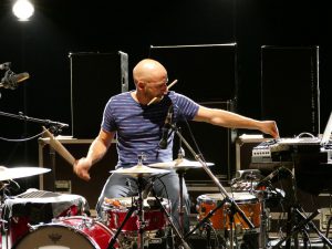 En première partie de REVOLUTIONARY BIRDS, AR KER (Seb BRUN) a effectué un set solo à la batterie traitée à l’électro-acoustique, offrant une longue pièce répétitive et organique, chamanique et expérimentale.