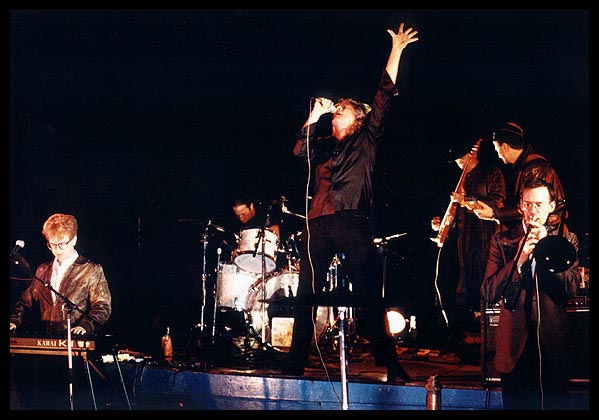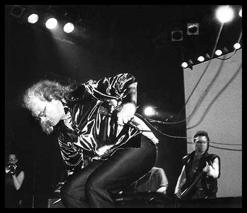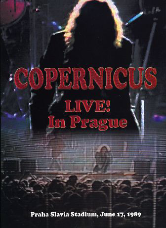 Voici donc un concert de COPERNICUS daté du 17 juin 1989, tiré d’une tournée sur le « vieux continent » qui est passée par Berlin, Vilnius, Sopot, Moscou et Prague. C’est dans cette dernière ville qu’a été filmé COPERNICUS, alors qu’il se produisait dans un festival accueillant également les Néerlandais de THE BLECH et des groupes locaux, GARAZ et PULNOC (ce dernier étant formé par Milan HLAVSA, la voix et la plume du légendaire PLASTIC PEOPLE OF THE UNIVERSE).