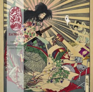 La scène « underground » japonaise s’est développée de manière tentaculaire depuis une bonne quarantaine d’années et est devenue en soi un conglomérat de formes culturelles inscrites dans l’ici et le maintenant, tout en se nourrissant pour certaines d’entre elles d’influences d’ailleurs et d’hier. C’est le cas d’EN’MA-O, un trio dont la musique s’abreuve tout autant de la scène avant-gardiste japonaise que du rock psychédélique et progressif occidental, tout en intégrant subrepticement des sons et des instruments issus de la tradition japonaise, et tout en jouant, pour le visuel discographique, avec les codes de l’art traditionnel japonais.
