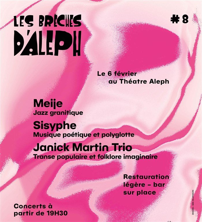 Les Brèches d’Aleph, c’est l’association de cœur, d’esprit et de labeur de la Cie Haoma (collectif de jazz étendu dans toute la largeur de ce vaste mot), du Théâtre Aleph et de divers collectifs de musiques improvisées, originaires d’amples et multiples horizons, pour organiser des soirées de concert, et pourquoi pas d’autres formes artistiques ou de réflexion au passage.