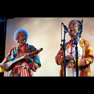 Paban est soutenu par Mimlu Sen qui l’accompagne avec les cymbalettes karkal ou avec l’ektara (monocorde qui crée un bourdon). Elle présente les chansons de Paban et en traduit des extraits.