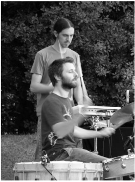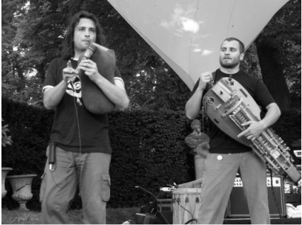 Nicolas : Depuis octobre 2007. J’ai rencontré Romain à Bordeaux au conservatoire en classe d’électro-acoustique et je connaissais François, que je remplace dans FAMILHA ARTÚS ; c’est un grand ami et c’est lui qui m’a proposé au groupe pour le remplacer. Je ne viens pas du tout de la musique trad. Au départ, je viens plutôt du rock indépendant, du punk, de l’électro-acoustique et de la musique électronique. J’ai pratiqué aussi beaucoup l’improvisation dans ces styles musicaux, sauf dans la musique électronique.