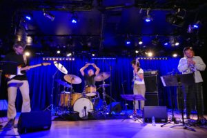 Propulsé par le compositeur et batteur Philippe GLEIZES, GLEIZKREW présentait au Triton sa nouvelle mouture, WAD!?, qui le voit évoluer du power trio initial à un quartette non moins éruptif, constitué de la bassiste Olivia SCEMAMA, du trompettiste Aymeric AVICE et du guitariste Niels MESTRE.