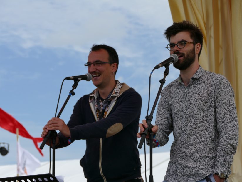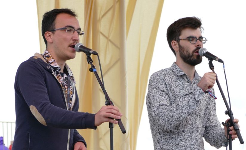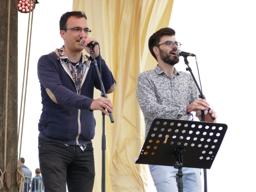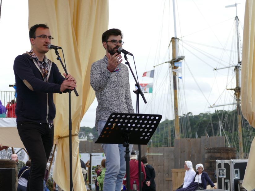 S’ils affirment d’une seule voix « C’est brut, mais c’est ça qu’on aime. Avis aux danseurs… En d’dans ! », les deux chanteurs ont plus d’une corde (vocale) à leur arc (-en-ciel guérandais) et c’est en concert avec un répertoire de chants maritimes, puis avec leur ensemble déambulatoire CASTOR & POLLUX, que nous les avons découverts au festival Temps Fête l’été dernier à Douarnenez et avons eu envie d’en savoir plus sur leur parcours.
