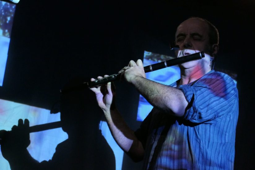 JLT : Voilà. Le spectacle solo est joué uniquement avec des flûtes, et dans l’album les flûtes ont été remplacées par des accordéons, des percussions, des saxophones, des harmonicas, des guitares…