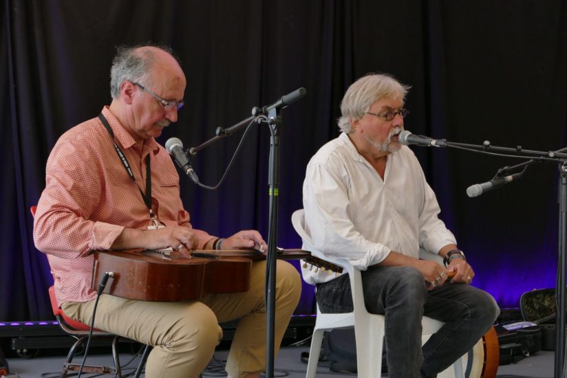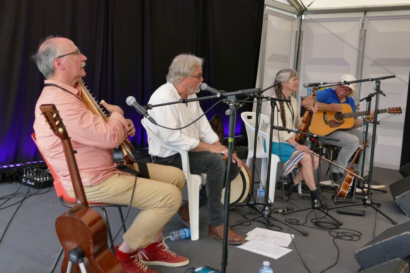 Roland : Il va falloir parce que, lundi par exemple, on a besoin de beaucoup plus d’une heure. On fait quelques cabarets et des choses comme ça où il va falloir faire deux passages. On va travailler d’arrache-pied et faire ça sans problème. Et puis il y a quelques compositions. On a commencé dans la musique traditionnelle avec Patrick, c’est vrai qu’on a abordé des répertoires différents, des chansons françaises nouvellement composées pour nous. Là, dans le programme, on a une chanson qu’a écrite Liette, des chansons qui viennent d’un répertoire début XXe, principalement québéquois.