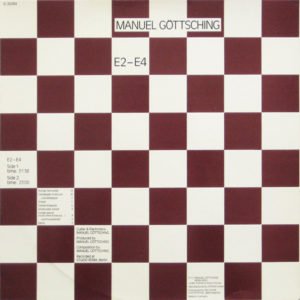 En solo, les trois premiers disques de Manuel GÖTTSCHING ont été affublés de « l’étiquette » ASH RA TEMPEL/ASHRA. En 1981 toutefois, il enregistre, cette fois sous son seul nom et toujours dans son laboratoire, le mythique Studio Roma, le célèbre E2-E4, un disque qui va annoncer le futur de la musique électronique. Il faudra attendre l’année 1984 pour le voir paraître sur le label de SCHULZE, Inteam. Ce prodigieux disque ne contient qu’une seule et longue pièce de presque une heure, découpée en neuf parties. Manuel, à la guitare et aux instruments électroniques, livre une musique totalement hypnotique et minimaliste. En avance sur son temps, E2-E4 va être, par la suite, une œuvre majeure pour la scène techno. Un peu comme KRAFTWERK, il sera copié, samplé, mais heureusement jamais égalé.