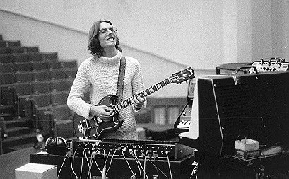 Loin de tout l’attirail électronique utilisé par TANGERINE DREAM, Manuel préfère se servir d’un seul instrument, la guitare électrique, dont il explore les possibilités pour créer quelque chose d’unique avec de magnifiques effets sonores sur les longs morceaux Echo Waves et Pluralis. Débarrassé de ce rock-psyché des premiers A.R.T., Inventions for Electric Guitars est un album visionnaire, avec, pour reprendre les termes de KDM, « various normal, half speed, double speed ans rhythm guitar tracks ». Il livre des sons répétitifs extraordinaires, d’une rare poésie quasi-cosmique, atteignant une émotion jamais égalée et toujours présente aujourd’hui. Nous faisons allusion ici au deuxième titre, le plus court des trois et intitulé Quasarsphere. Ses six minutes sont un grand moment de musique, déchirant et inoubliable à la fois. Par son jeu d’une grande précision, clair et limpide, GÖTTSCHING s’avère être un excellent guitariste ; à mon avis, il surpasse même Edgar FROESE. Sa musique fascine, car il a su mêler l’univers de l’électronique (représenté par l’orgue Farfisa, l’ARP Odyssey, l’ARP Sequencer, l’Ems Synthia, l’Eko Rhythm Computer…) à celui du rock et de la guitare (Gibson Les Paul, Stratocaster). L’alchimie entre les machines et la guitare est perceptible sur les autres disques de Manuel, parus sous le nom d’ASHRA.