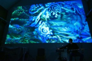 Il est revenu cette année pour livrer une performance ethno-ambient à base de nappes atmosphériques serties de percussions abstraites dans lesquelles il incrustait des boucles de guitare en alternance avec des interventions différentes flûtes chinoises, japonaises… avec en fond sur écran de superbes animations parfaitement en phase avec la musique, réalisées avec le programme fractal Mandelbulb 3D, qui permet de créer ses propres mondes et de voyager à travers eux. Visionnaire et thérapeutique, féérique et fantastique.