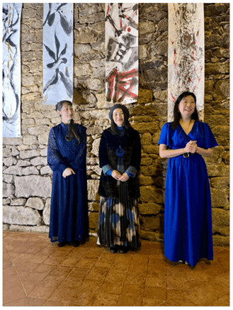 Hiromi ASAÏ, conteuse ; Izumi KOHAMA, calligraphe ; et Shiho NARUSHIMA, pianiste et