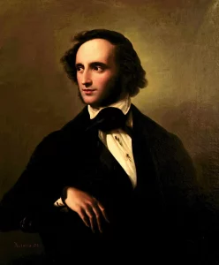 Néanmoins, MENDELSSOHN occupe une place particulière dans ce courant romantique : il fut un des actifs re-découvreurs de HAENDEL et de BACH – qui n’étaient plus joués à son époque – et leur écriture contrapuntique aura une influence profonde sur son style de composition. On le dira « le plus classique des compositeurs romantiques ». Les Romances sans Paroles jalonnent quinze ans de sa vie et portent en l’occurrence témoignage de son évolution stylistique. WAGNER le considérait comme « le plus paysagiste des romantiques ». Paradoxe et ironie cruelle de l’Histoire, si grâce à lui la musique de BACH fut remise à l’honneur, il fut ostracisé par le régime nazi ; et il faudra attendre la deuxième moitié du XXe siècle pour découvrir son importance majeure au sein des compositeurs romantiques.