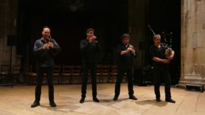 En seconde partie de cette soirée des Rendez-vous contemporains de l’église Saint-Merry, Erwan KERAVEC a présenté son projet Sonneurs avec Guénolé KERAVEC, Erwan HAMON et Mickaël COZIEN.