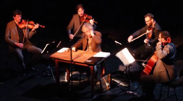 Albert MARCŒUR et le QUATUOR BELA au Festival La Voix est libre aux Bouffes du Nord à Paris, mai 2013 Albert MARCŒUR (textes, chant) et