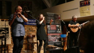 Gilles Le Bigot à la guitare et au tenbura bulgare, Jean-Michel Veillon aux flûtes, Marthe Vassallo au chant : trois pointures de la musique et de la chanson bretonnes ont laissé leurs « Empreintes », porteuses d’histoires, de répertoires, de styles et d’émotions sur des rythmes enjoués et avec des mélodies qui respirent, dans les esprits du public parisien de la Mission bretonne.