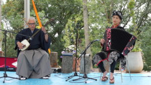 Pour la circonstance, un programme de musique japonaise avait été concocté, avec le duo MELTING POT (Sylvain Diony et Hiroko Ito), qui mêlait thèmes de tradition française et japonaise dans un esprit sémillant et convivial, et l’ensemble YOZAKURA (Emiko Ota, Harugin Sawada et Mayu Sato), qui nous a régalés de thèmes folkloriques japonais dans une ambiance garantie « matsuri » (fête populaire traditionnelle) !